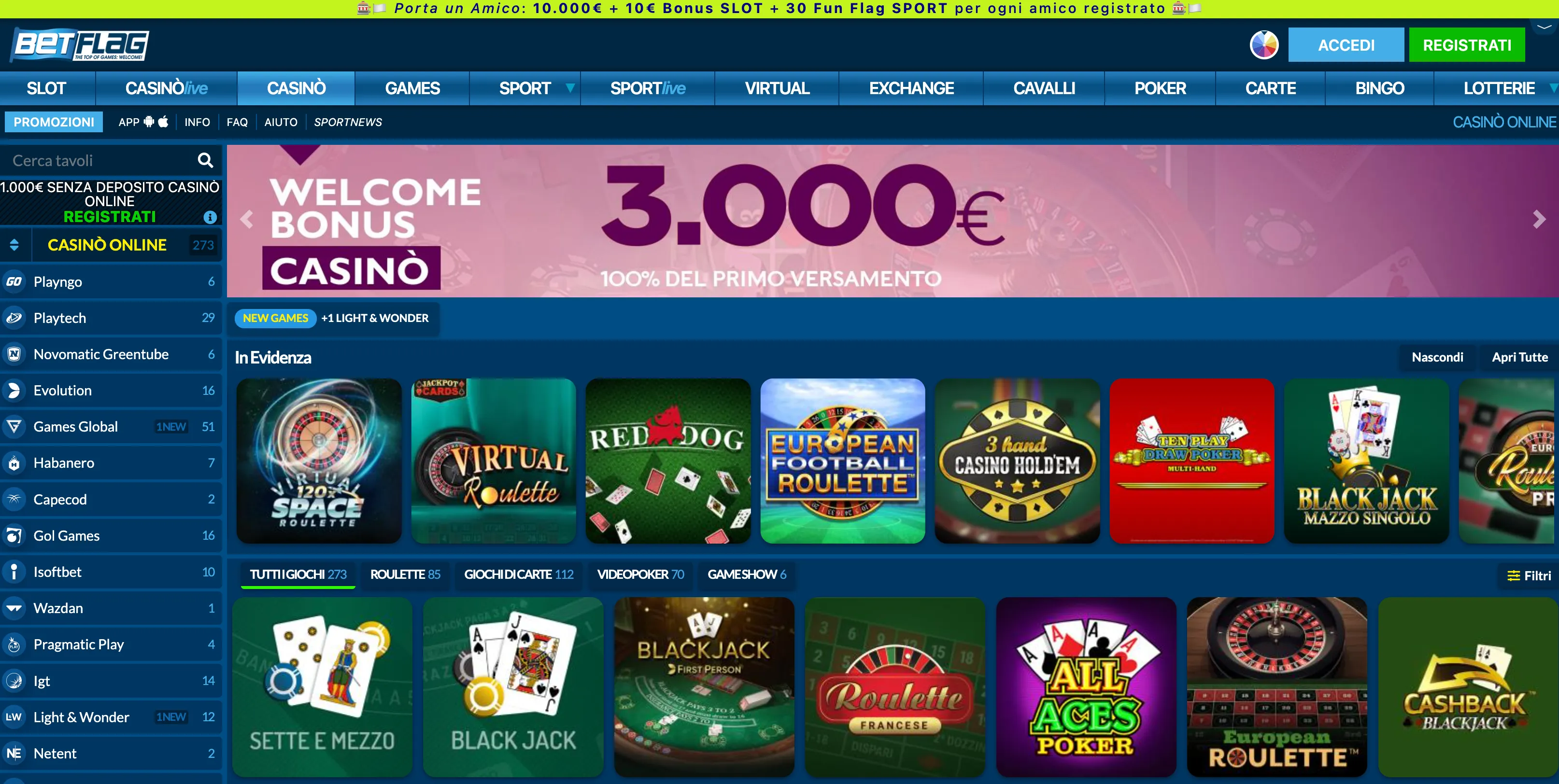 | Betflag | €1.000 + 100 Free Spin | ⭐⭐⭐⭐ (4.1/5) | PayPal, Postepay, Carte | Sì |